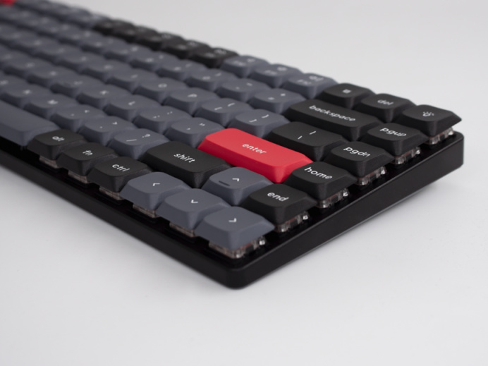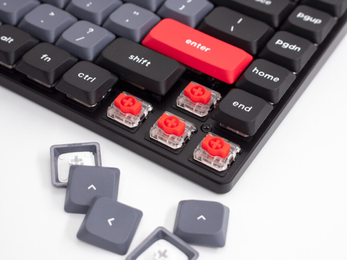 手感上這次K3pro和那些用正常軸體的機械鍵盤非常相像,我嘗試換了一套全高鍵帽上去,換了之後的手感就更像正常的機械鍵盤了。