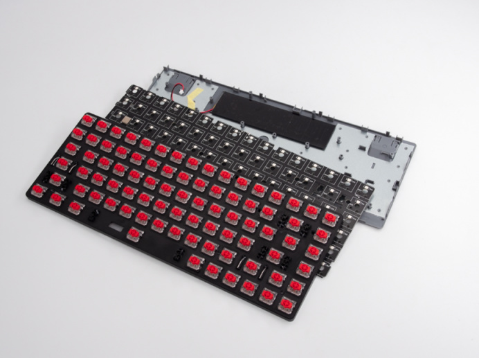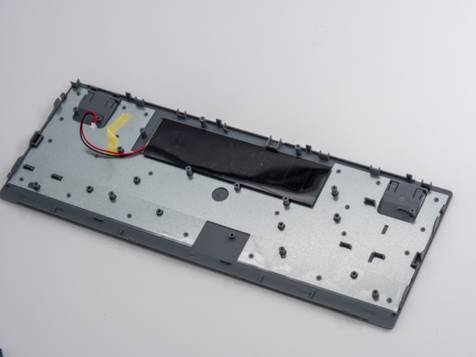 最後來看拆解,超薄的鍵盤設計整把鍵盤內部並沒有太多層,也沒有很多消音措施。