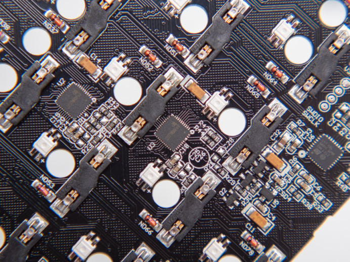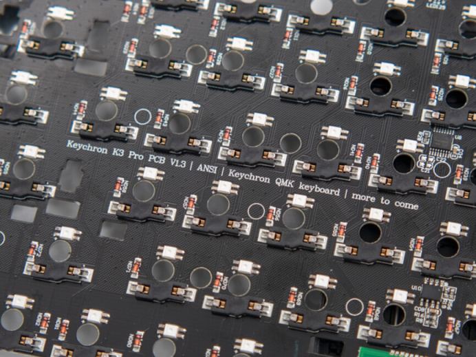 PCB上蹲着上燈位RGB燈珠,但因爲PBT鍵帽原因所以發光效果並不算優秀,所以這幾天我也沒開燈用。