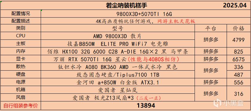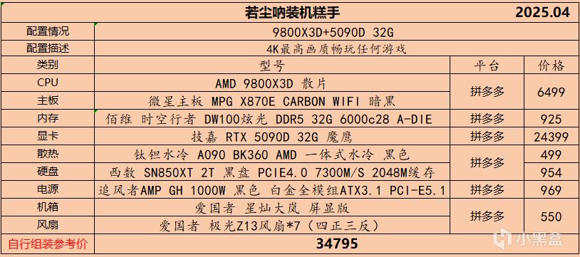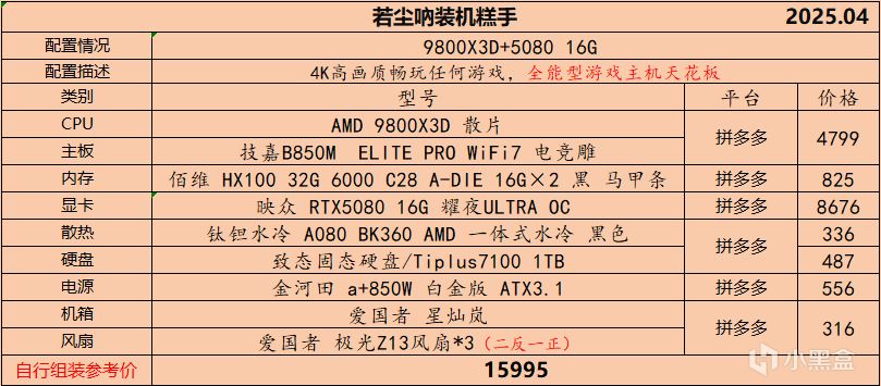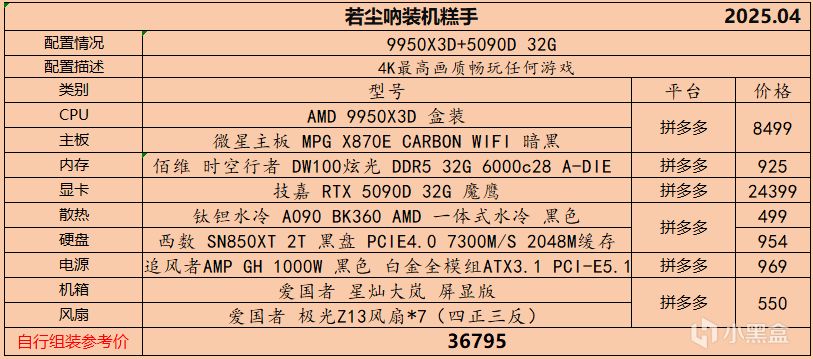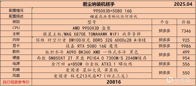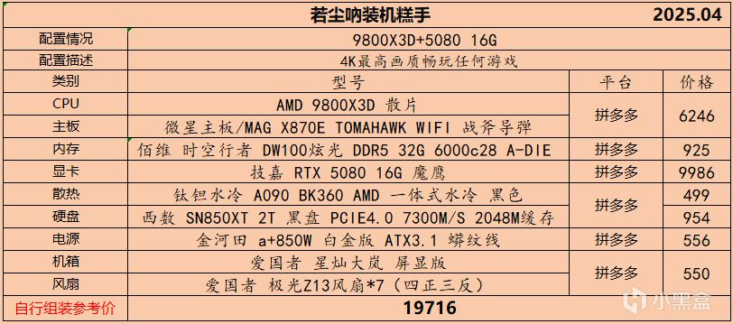十二、18000以上預算的,我也就不整什麼性價比搭配了,預算都拉滿了,在黑盒裝機肯定都是以遊戲爲主,CPU這塊,後面就以9800X3D、9950X3D爲主,顯卡以中高端5080、5090D爲主給你們推薦一些搭配,需要的盒友按需購買即可: