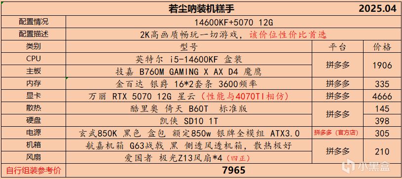 其他的,主板、散熱、機箱、風扇等仍舊價格穩定,無需在意。