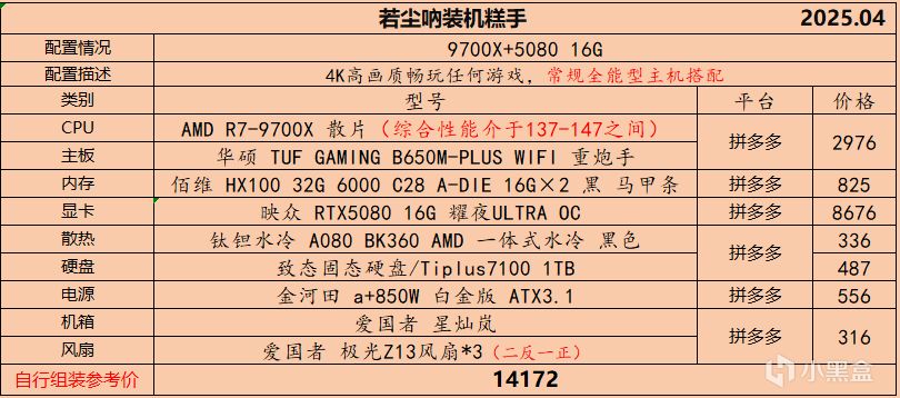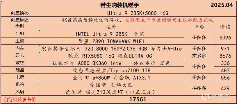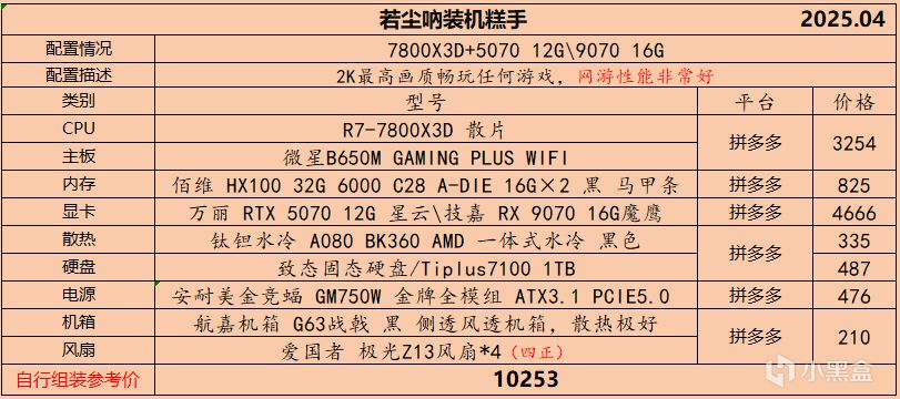 九、9000-10000預算,這個預算能選擇的跟八千的區別不大,只能通過性價比搭配來將整體性能往上提升,所以只寫了一個常規搭配和三個極致性能搭配,正常購買是要一萬出頭的: