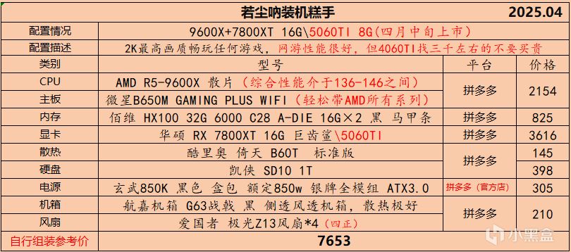 七、7000-8000預算,這個預算也基本是正常人能用的到性能天花板了,搭配偏性價比: