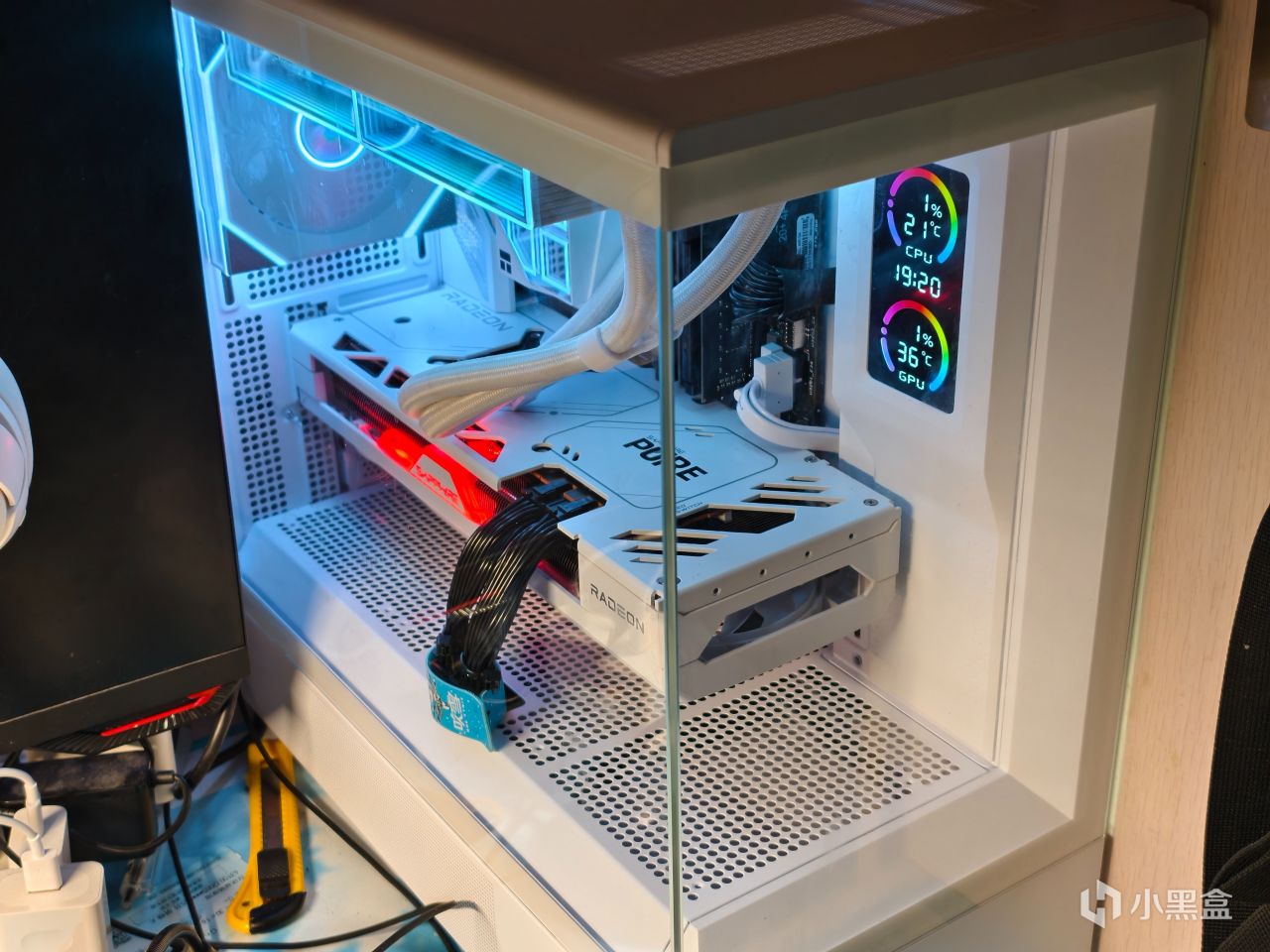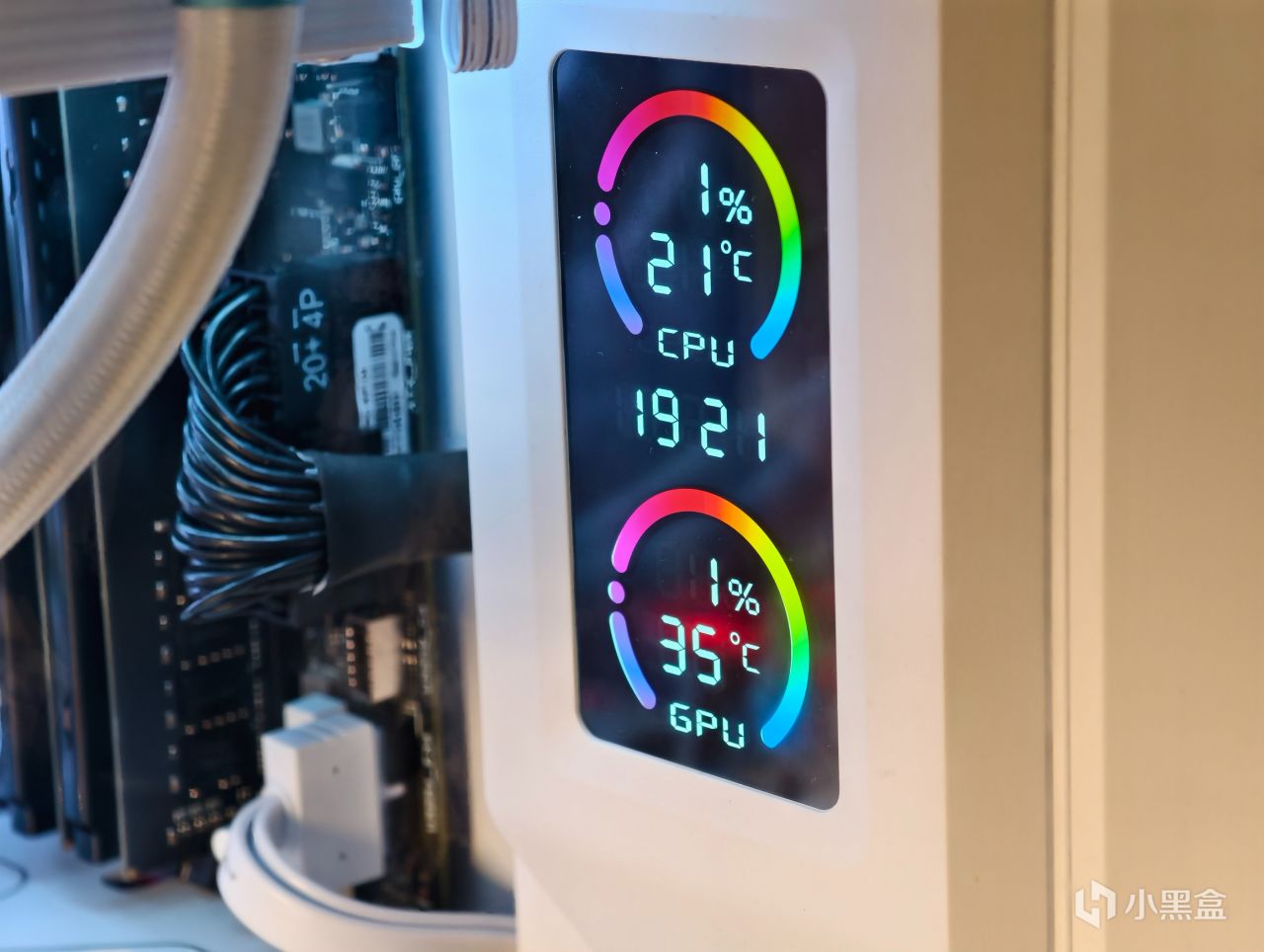 内部屏幕面积不大,通过驱动实现CPU/GPU的温度与利用率监控。从机箱外侧看,屏幕的观感不错,清晰度有保障。