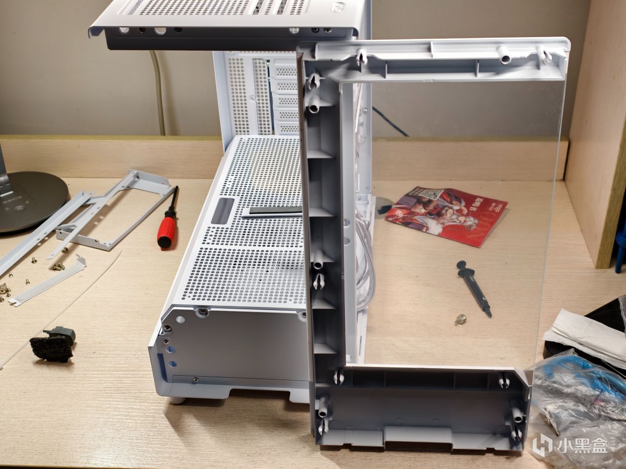 屏幕被安置在机箱内部侧板处,个人感觉相对于标准岚的底侧面,来到更实在。而岚的侧玻璃盖板是快拆的,比小岚又方便一些... ...