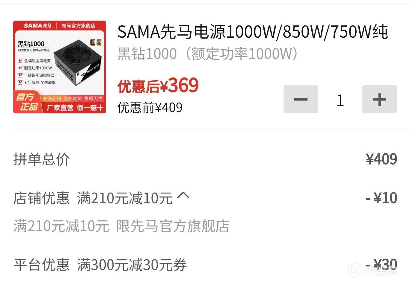 电源为拼多多薅羊毛369元拿下的先马1000W,全模组金牌,做工用料还行,这价要什么自行车?
