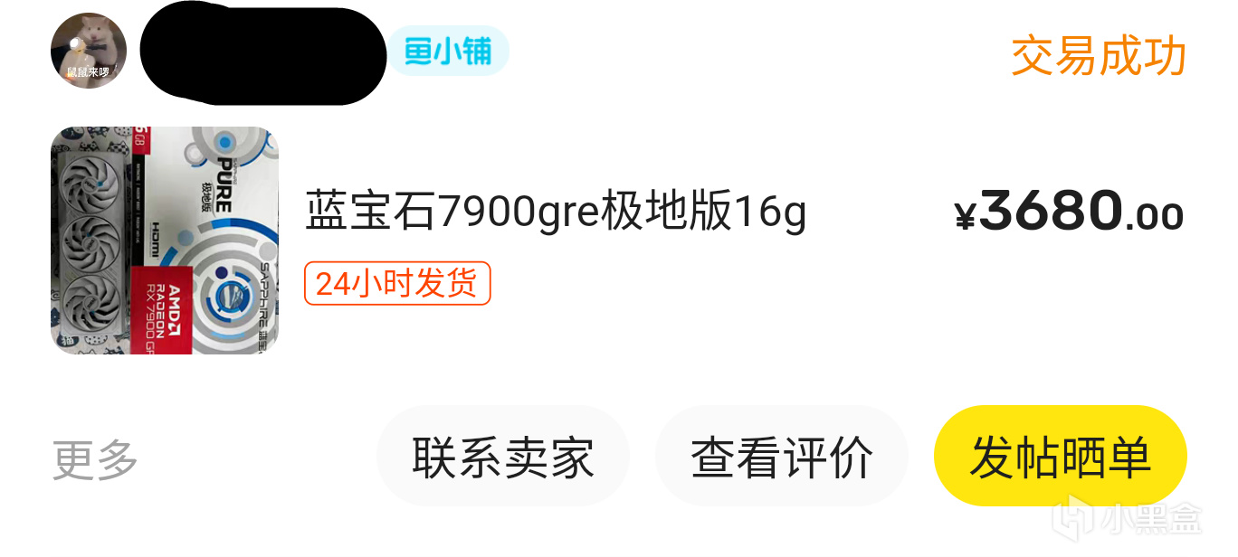 显卡原先是6700XT,小亏出掉,且在咸鱼蹲到蓝宝石7900GRE,24年十二月份的卡,好价,xm!