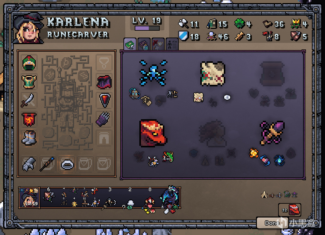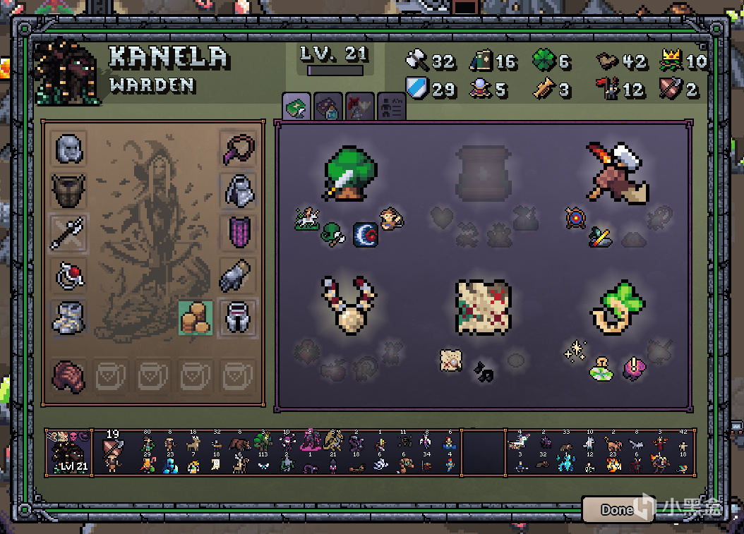 矮人裏唯一擁有後勤術的英雄,步數足夠纔能有點出矮人四技能的資本。這個英雄的開局是矮人的主技能和第一個子技能,這意味着你需要3天打一次野怪才能保證自己不會原地爆炸,前期是比較痛苦的。等到三級怨恨-二級毀滅都點出來之後,這個英雄就算是初步成型了,後期補二級龍王刷深淵領主,其面板如下: