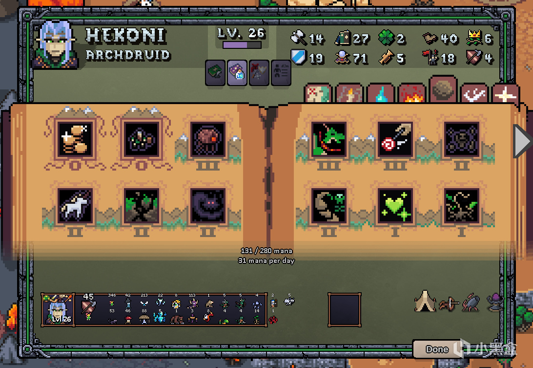 活化石一般的老英雄了,精通的是森林精靈一直都沒變。打法也沒變——點出二級毀滅後用小精靈自爆打輸出,召喚術/土系/氣系魔法打輔助。得益於自然派系機制的改動,現在醫務室可以正常復活森林精靈,另外,通過生命火花,土系魔法二技能刷出的小精靈還可直接升級,免去了之前要拿到自然基地的麻煩,圖上的346個森林精靈大致是這麼來的。戰鬥的時候,你只需要放法術就可以了,而你的敵人考慮的就多了——這對面的法術帶治療,帶小精靈上場,打完精靈反而更多了。這把刷到的法術主要有: