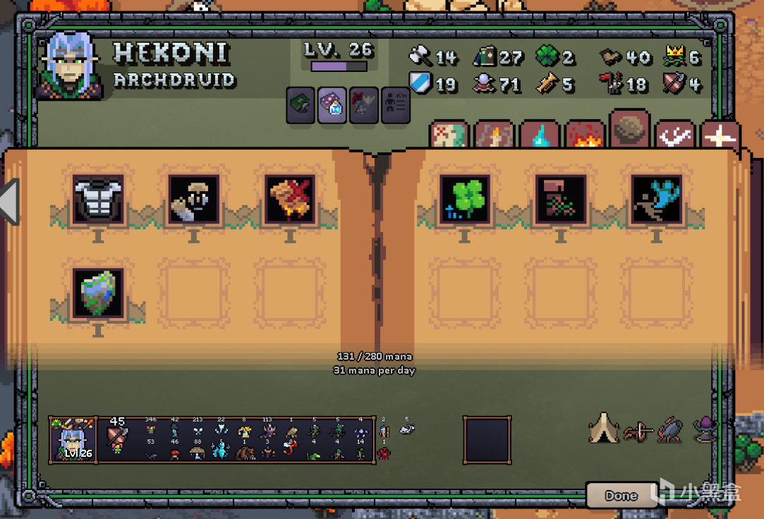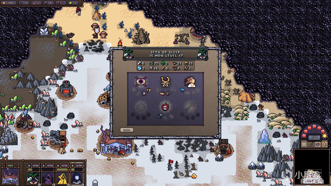 新英雄,精通邁達斯的後裔。開局的理財術放在其他種族或許平平無奇,但是在蜥蜴人這裏是救命錢——錢多才能爆更多的兵,纔能有戰鬥力。把精通值堆上去也是一樣的目的,邁達斯的後裔自帶點金詞條,可以稍微賺點外快,但是點精通三技能轉化顯然是沒必要的。中後期點領導力和水系魔法,圖上的18級基本就是英雄的最強形態了,還是結束不了遊戲的話只能點保鏢當輔助了,從基地裏招一個龍王/淤血/吞噬的大哥來保證自己不會翻車吧。