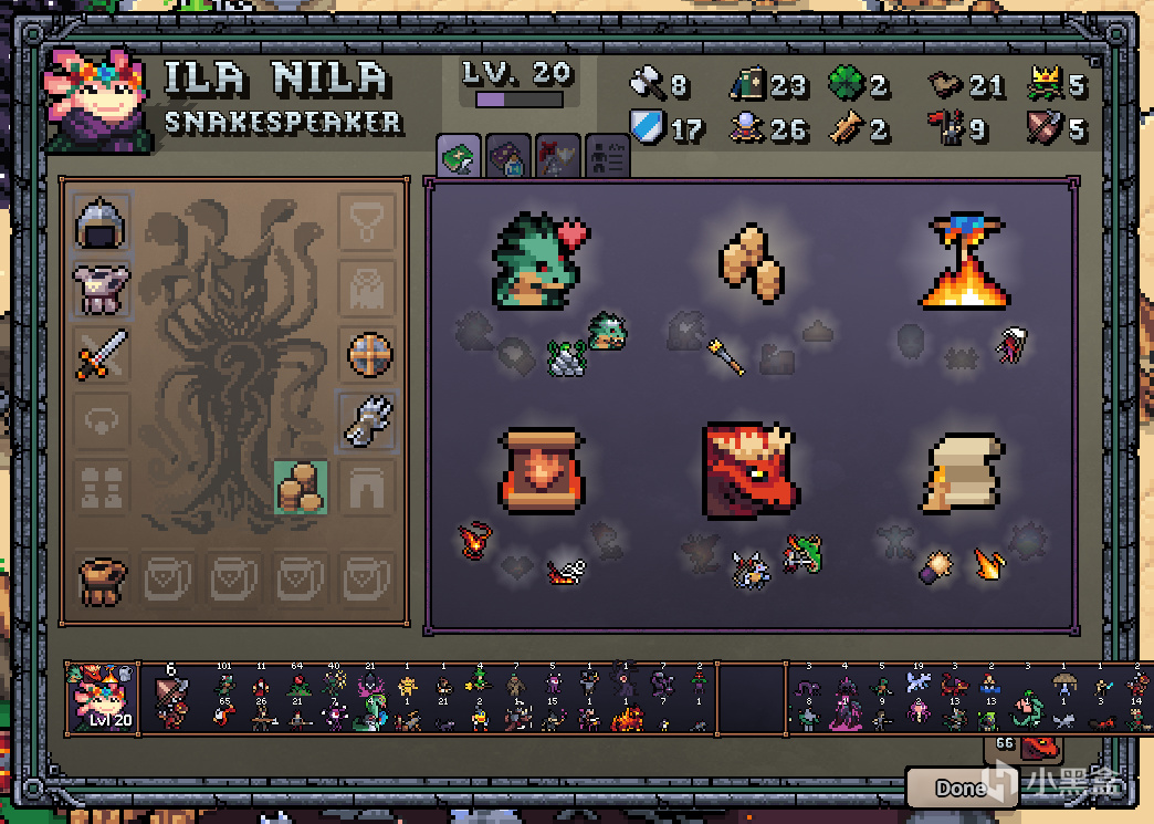 前期召喚獨角獸(第一張圖第二排第一個),治療(第一張圖第二排第五個)好兆頭(第二張圖第一排第四個),土盾(第二張圖第二排第一個)。後期就簡單了,催眠(第一張圖第一排第五個)和神祕術刷出的躁狂症(第三張圖中的Mania),對面上千強度的單位能被我無縫控死。