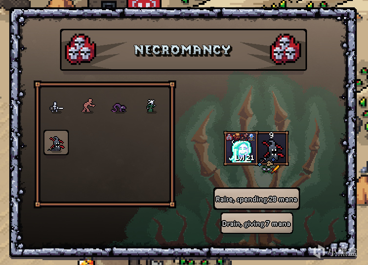 可以看到,後期可以刷地獄山羊出來,所以可以用地獄山羊打主力,沒必要像圖上這樣點精通三技能轉化成黑貓。剩下的技能點都偏法系,毀滅技能是核心,利用自爆打輸出。