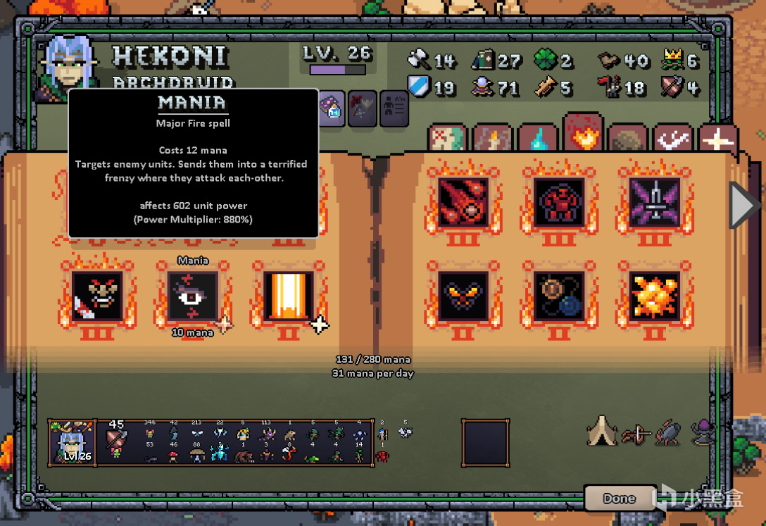 除了熟悉的躁狂症打亂敵人陣型外,當敵人扎堆時我還會用這個召喚爆裂火蠅。爆裂火蠅有些類似於帝國2/4的自爆船,自毀攻擊,但攻擊是小範圍AOE,在敵人扎堆或是對方遠程排好站位時放一個這個法術經常能起到打開局面的作用,何況在三級神祕術和英雄法強的加成下這裏能一口氣拉80個爆裂火蠅出來。