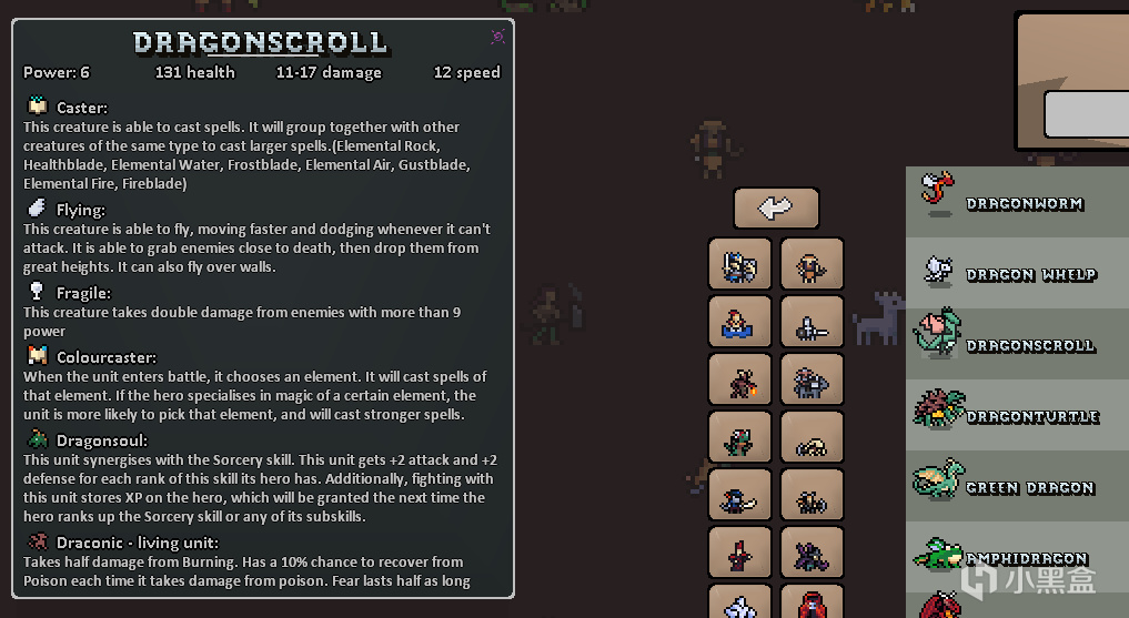 馴養在經歷了幾波親兒子級別的加成後,現在已經是一個性價比很高的技能了——跳過戰階會自動馴養動物,無論是否打的是隱藏的動物都會觸發馴養。因此,同樣是理財術開局,這個英雄比上個英雄開局容易得多,很容易靠二級馴養“偶然地”得到了殺手水母之類的動物而滾起雪球。後面的話,比較無腦的點法是隻點士氣低落,比較耍雜技的點法是圖上這樣點龍王-火系魔法-巫術刷龍,用火系魔法輔助。對比一下,巫術+龍王送的龍捲軸: