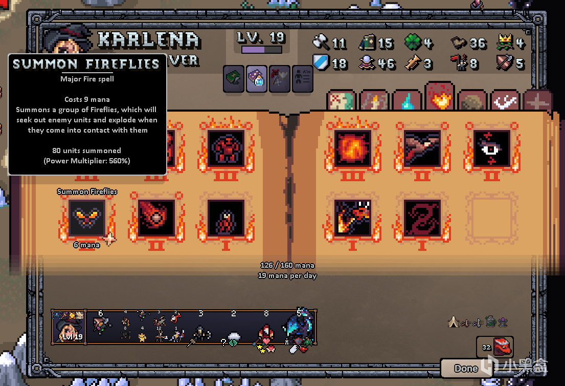 【二技能】教授火球法術,降低其藍耗2點,每天回3藍。減藍耗後,火球4點藍耗,100%狀態下打36小範圍傷害,還算是不錯的清雜法術。考慮到地獄法師幾乎人手一個火系魔法,完全可以配合火系魔法的一三技能,用這種廉價法術瘋狂在戰場上刷火球,戰鬥結算後還能增加巨量的步數緩解地獄派系總是追不上人的尷尬。這個技能能點就點。