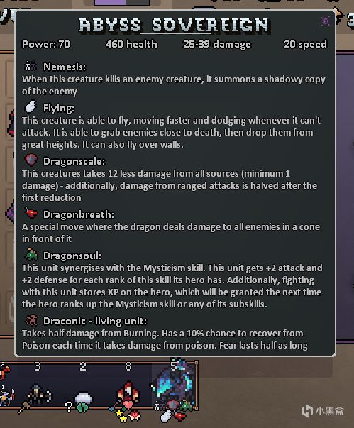 這個利己主義詞條在這種加點下可以發揮最大的作用,在自己的場上只有這一個兵種,特別在自己兵力少於對方時,血量和傷害可升到2倍。想象一下吧,這個其貌不揚的小不點擁有520血34-52攻還帶點金術秒殺,說是人形黑龍也不過分。而且20+的強度損失一個也完全不心疼——損失了就都變成我的等級,這就是這個英雄的核心打法。神祕術和吞噬點不點都行。