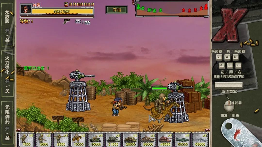 《合金彈頭》同人遊戲,甚至一些素材都是直接從遊戲挪用過來的。等到了二代之後,遊戲才逐漸有了自己的風格(儘管關卡流程中依舊有着一些前者的影子)。而大多數國內玩家接觸的,是系列第二部《二戰前線2》的無敵版。