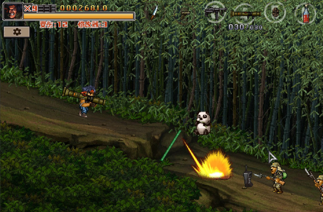 子彈和武器強度的限制,對於你的資源管理有着不低的要求。在密集的火力之下,如果你不開個無敵版,很容易就卡上幾關。在一些玩家眼裏,原版第八關的難度,甚至足以在flash橫版遊戲的歷史上留下名字——相比之下,紙面難度更高的第十二關,因爲具備高級武器的加持,反倒沒那麼難。