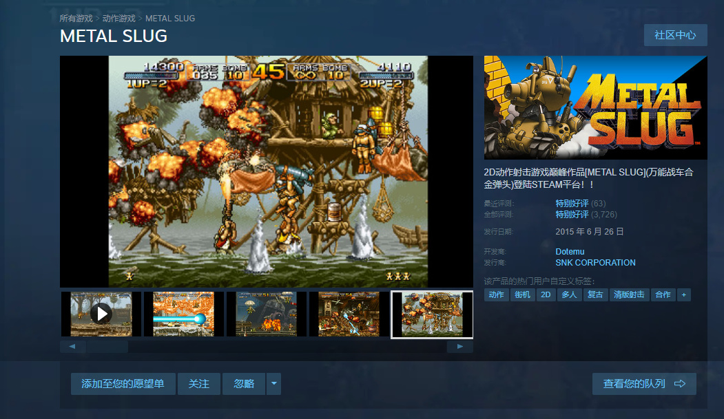 順帶一提,《合金彈頭》系列已經於2015年上架steam了