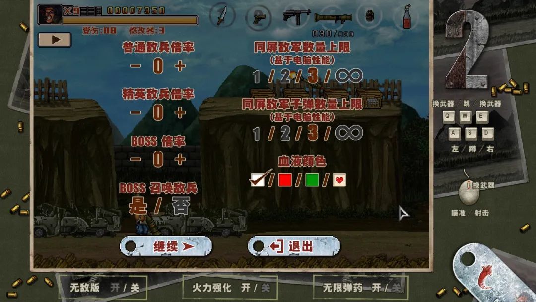 而大衆最關心的“無敵版”開關,也得到了加入,你可以隨時在遊戲中調節子彈是否無限、血量是否無敵、火力是否增強。