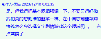 “在中國想割韭菜賺快錢,怎麼會選擇文字劇情遊戲這個領域呢?”