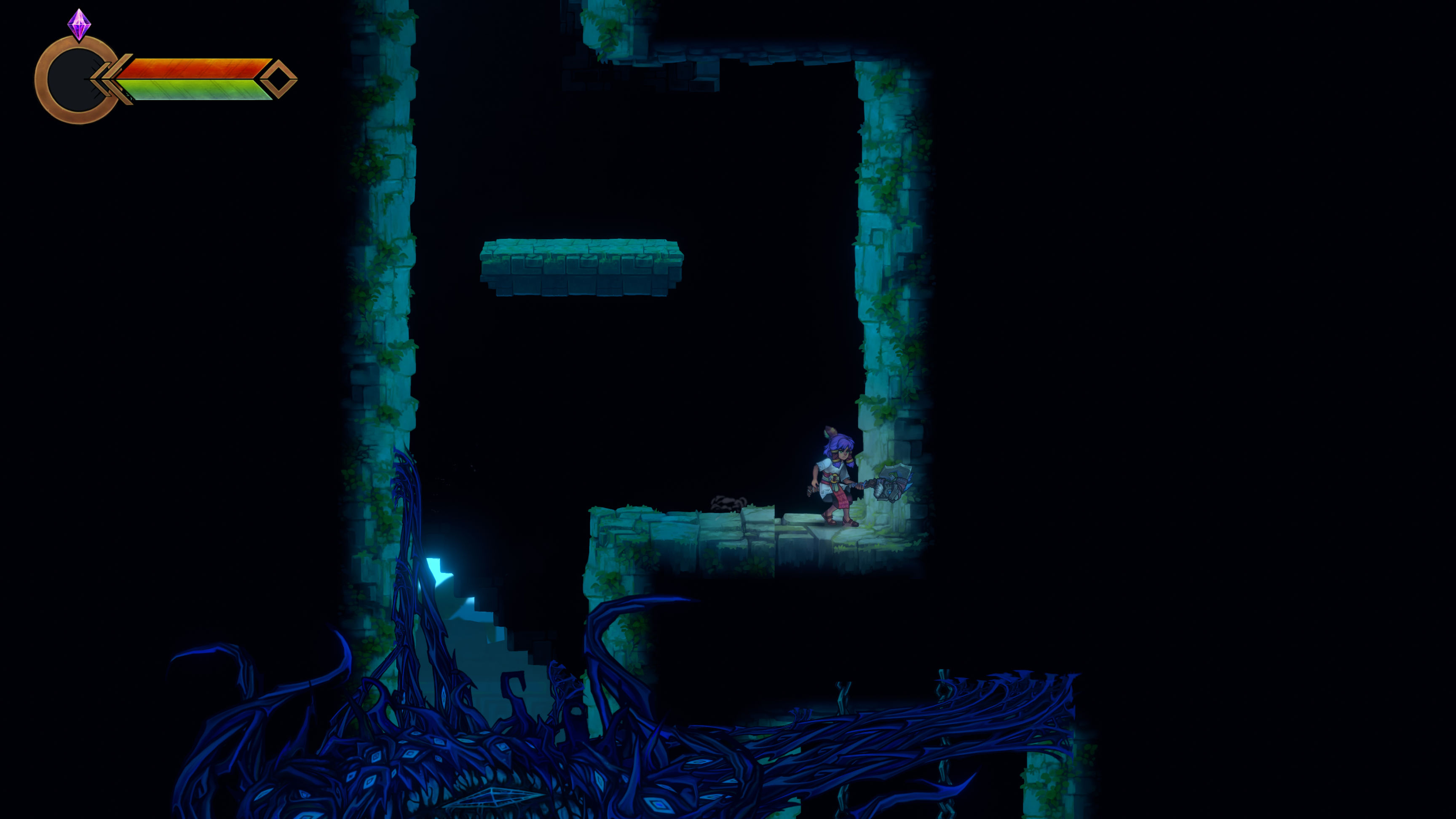 比較遺憾的是本作作爲一款輕鬆休閒沒啥難度的銀河城,對於遊戲性方面的設計真的少得可憐,玩法機制概括下來就是全程迷宮探索找鑰匙,迷宮終點處打BOSS或者玩一場沒啥難度的逃生戰。