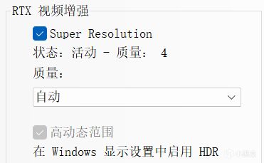 可是哥们常看的视频,大多都在1080p甚至4k的清晰度,自然用不上VSR,更别说用来观看视频的主力显示器分辨率是4k,即使超分到1080p,对我来说只是从糊变得没那么糊而已。