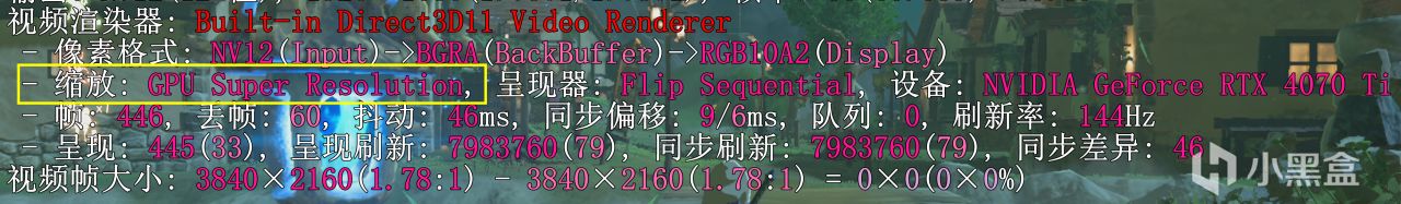 打开画面后,可按Tab键查看超分开启情况。缩放显示为GPU Super Resolution,或NVIDIA控制面板提示视频增强活动中时,代表超分正常开启。