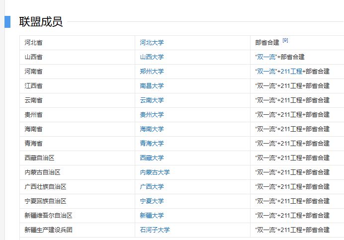 “中西部一省一校國家重點建設大學(Z14)聯盟”簡稱爲中西部一省一校聯盟(Z14),參加聯盟的高校有河北大學、山西大學、內蒙古大學、南昌大學、鄭州大學、廣西大學、海南大學、貴州大學、雲南大學、西藏大學、青海大學、寧夏大學、新疆大學、石河子大學等14所大學