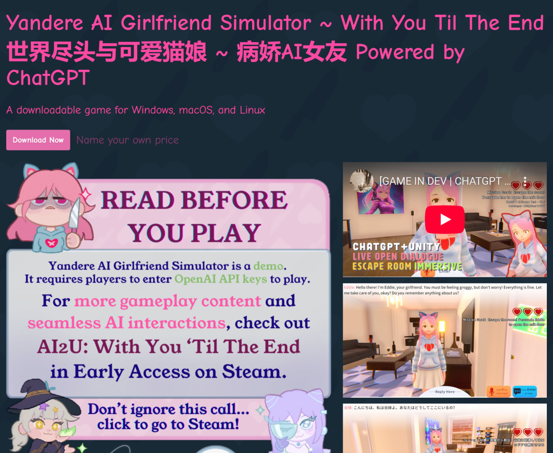 《病娇AI猫娘女友》最早只上线了itch.io