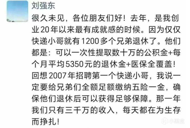 此举,不仅直接刺中外卖行业“劳务外包”的命门,也印证了刘强东的最新宣言——“我们的算法不该用来压榨底层兄弟!”所言非虚。这也意味着,当刘强东前两天在朋友圈晒出“1200名快递小哥退休后月领5350元养老金”时,理所应当的得到舆论支持。