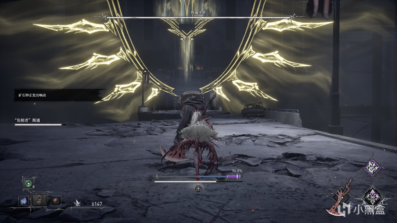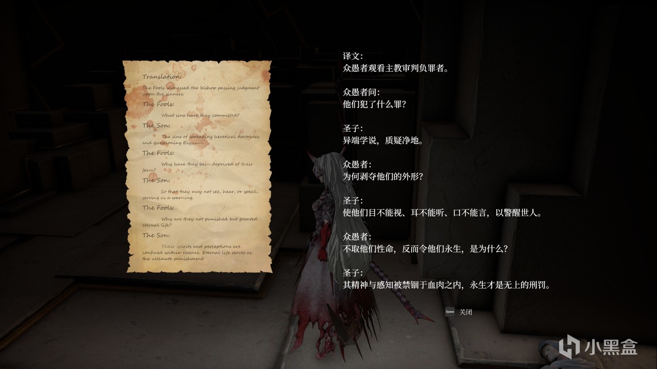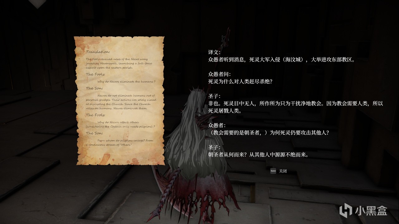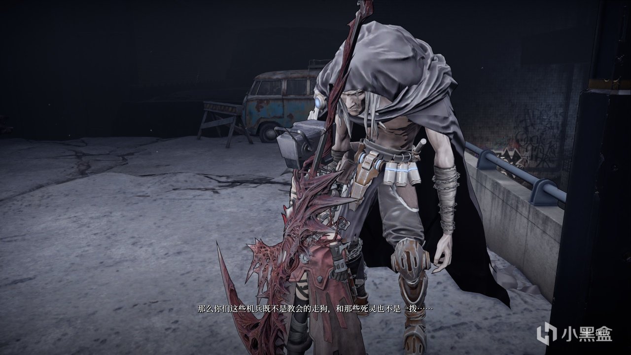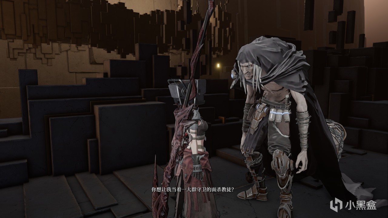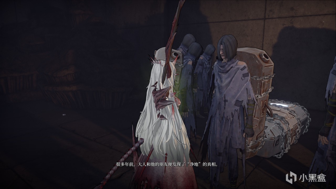 再比如遊戲裏有一位抬棺者斯通,初見時給主角一個鈴鐺讓我們告知其聖徒的位置並召喚他。正當我疑惑這是爲何時,只見他直接屠殺了所有的聖徒,殺的比我還積極。