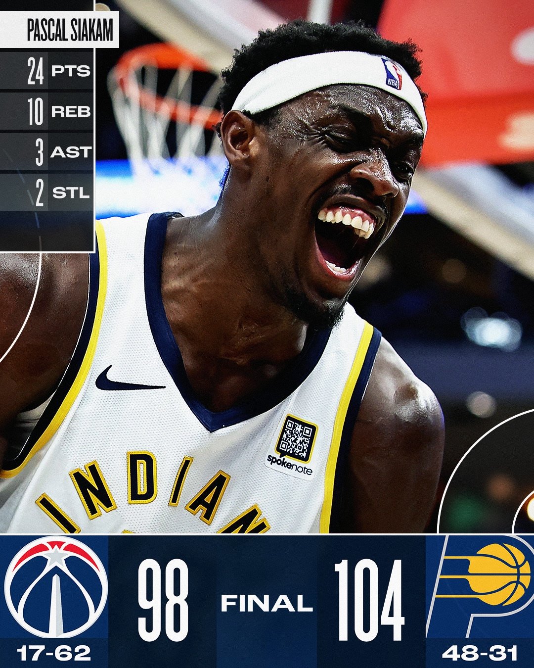 帕斯卡·西亞卡姆的兩雙幫助步行者取得5連勝!