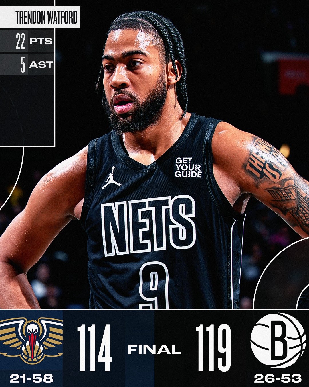 特倫登·沃特福德以87.5%的投籃命中率砍下22分,助@布魯克林籃網隊主場告捷!