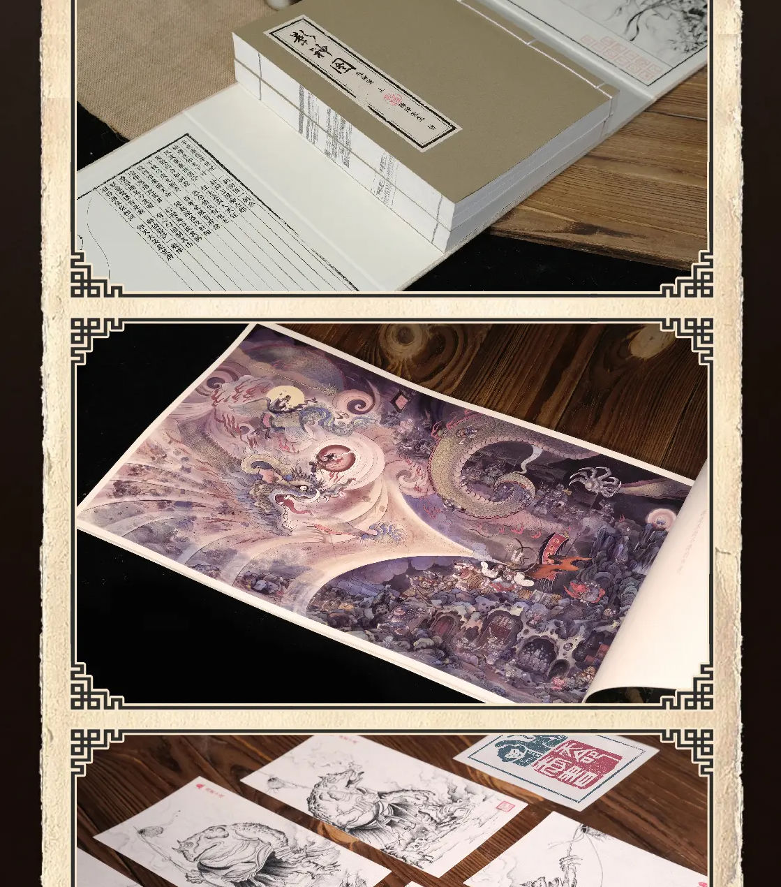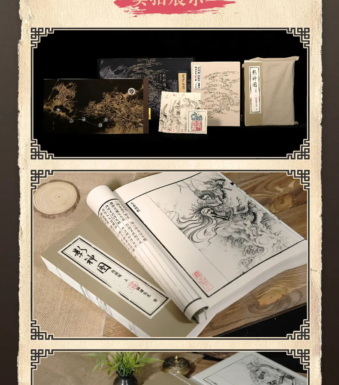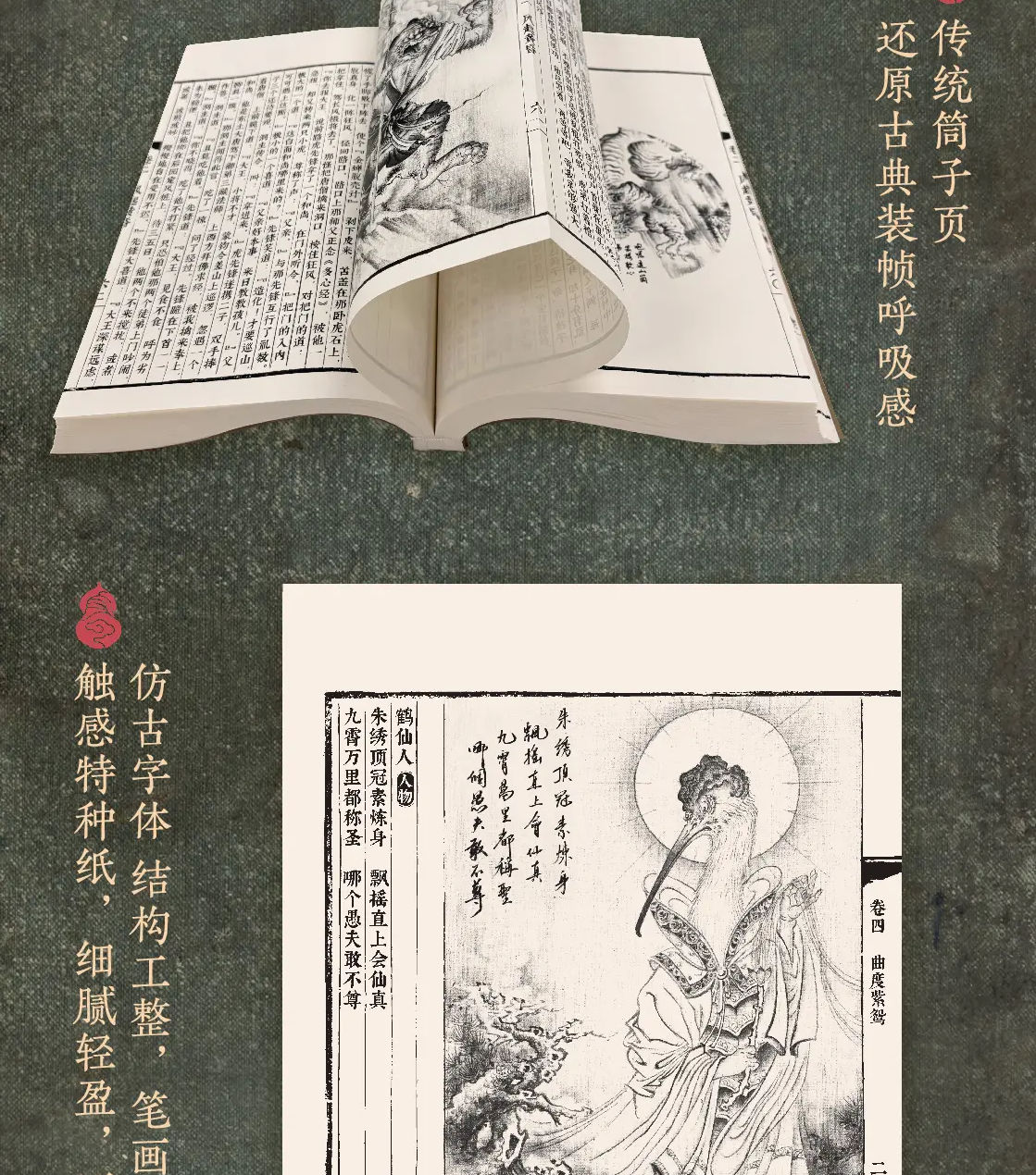 上下两册纯手工线装工艺,精选优质特种纸,还原角色绣像细节。