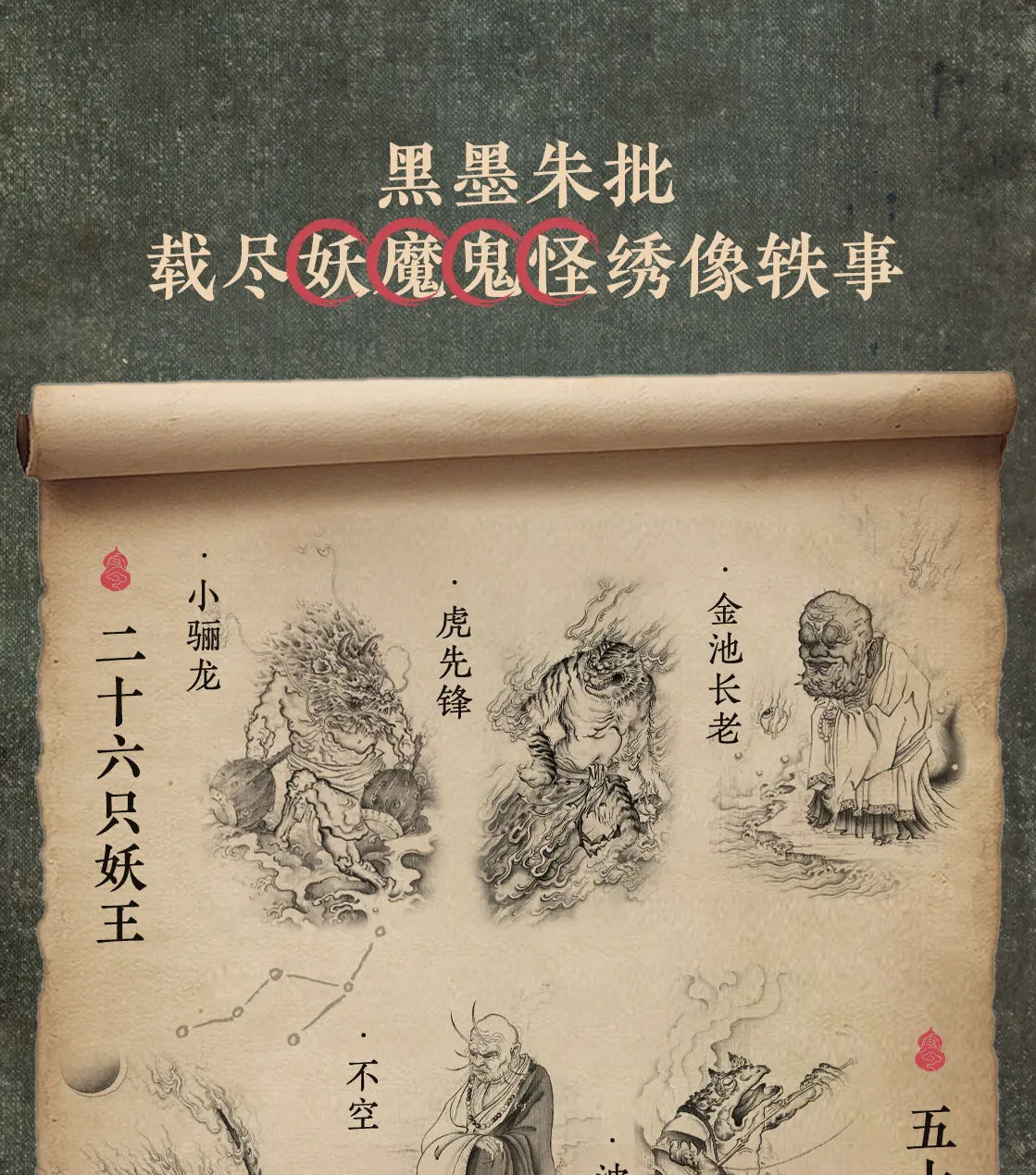 角色全收录!上下两册,六卷,二百零三个角色 成就全收录!九九八十一难,完整记录天命人来时路。