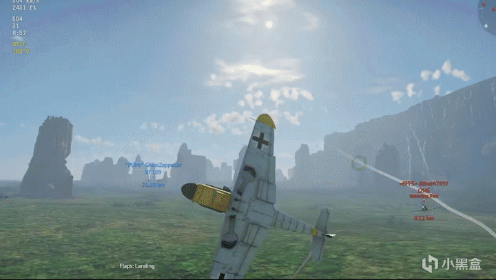 當你的飛機能量(速度/高度)低於對手時,直接對抗必敗,因此需要通過“誘騙”讓對手主動進入你的優勢區間(如低速格鬥)。假裝能量不足:故意減速(如收油門至80%)、小幅搖晃機身,讓對手認爲你已無力反抗。當敵機因爲要追擊你做機動後損失速度。這個時候你突然開啓戰鬥襟翼(F鍵)+ 滿油門,以最小半徑轉向繞到對手後方。若對手試圖爬升脫離,直接機炮攔截實現反殺!