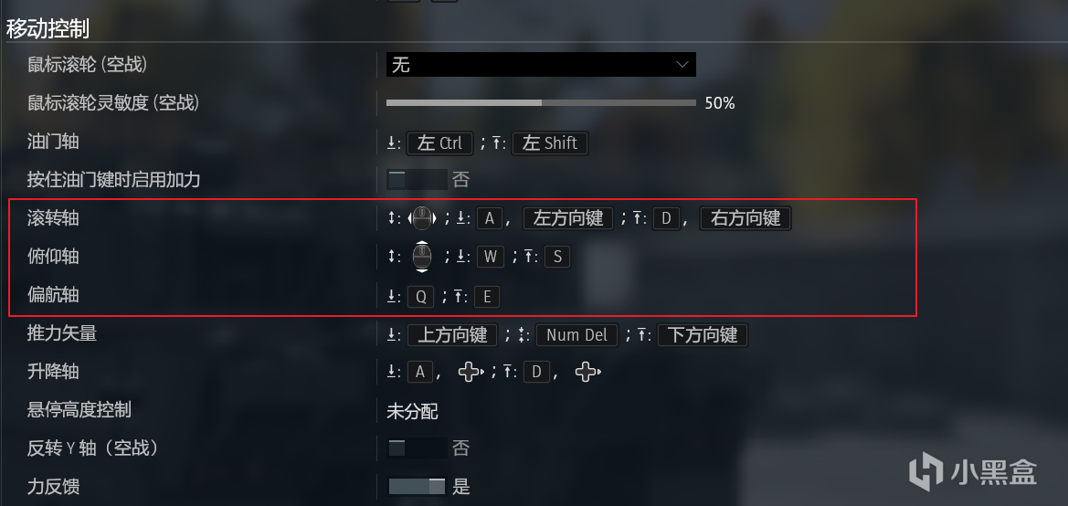 俯仰軸這裏W和S可以根據個人習慣進行調換。對應在遊戲內如下圖: