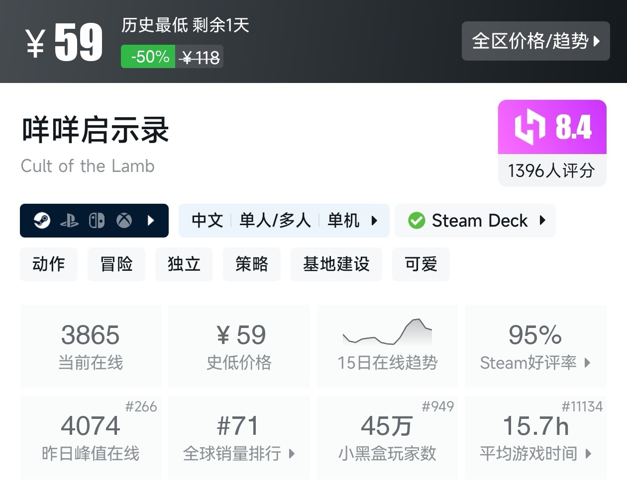 大家好,最近Steam可以说很多游戏都迎来了史低,不论精品独游,还是3A大作都在最近开启了史低,那么,接下来就和我一起看看到底有哪些游戏都参与了史低,希望我的汇总,能够帮助各位盒友挑选心仪的游戏。