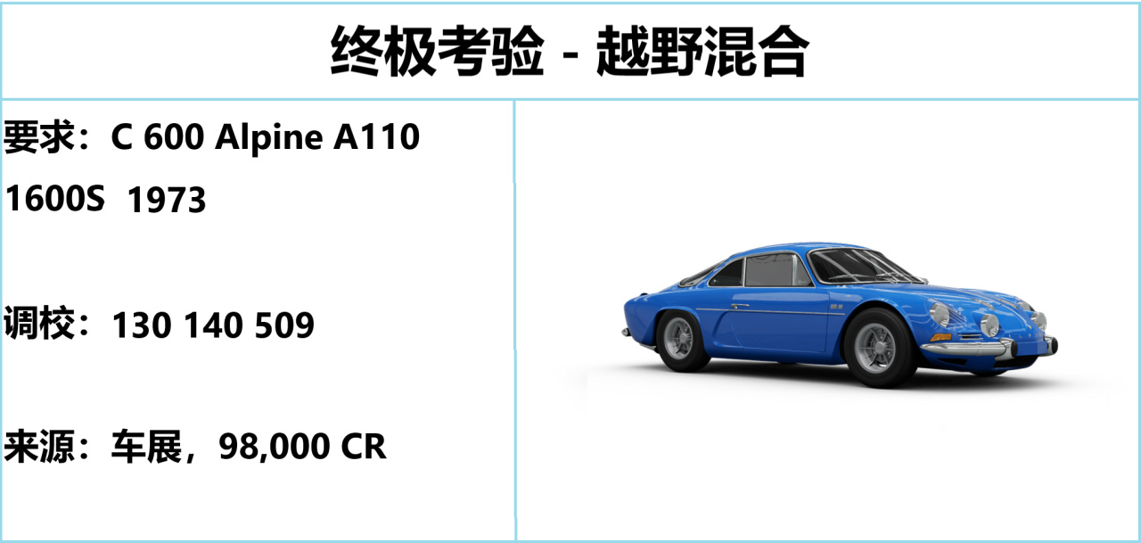 A110 是第一輛贏得 WRC 冠軍的賽車,這場終極考驗也是當時爲了預熱力 DLC 特地設置的。