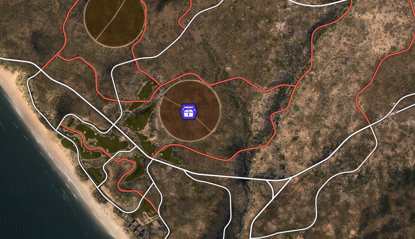 驅車抵達該處,可在灌溉器的支撐柱旁邊找到寶箱,破壞後獎勵 100 馬拉松點。