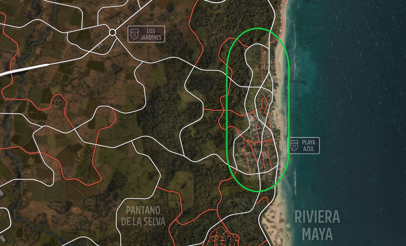 藍色海灘的範圍參考;極速技術:以161+ km/h 的速度行駛 457 米即可獲得。