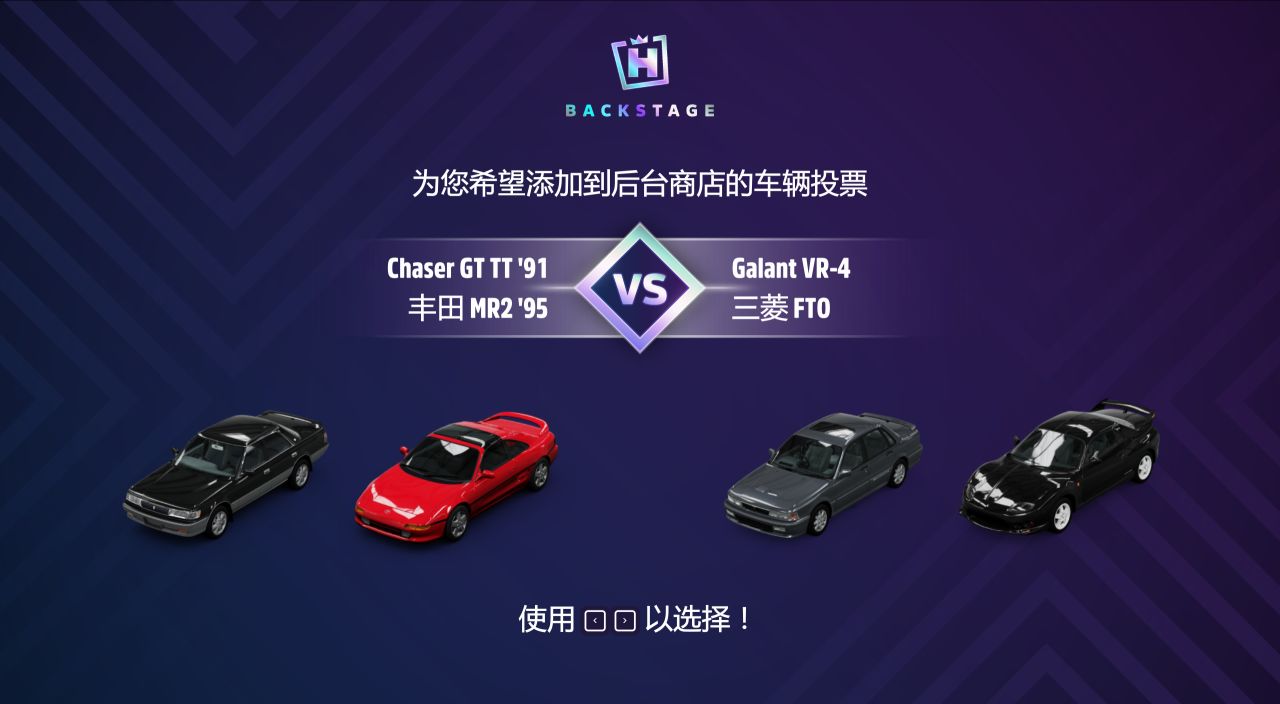 根據人氣投票結果,後臺每週新增 2 輛限定車輛。預計在嘉年華列表停止更新後,所有活動限定車輛都會加入到後臺。
