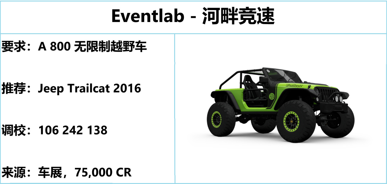 季節賽常用的綠吉普,加速很猛但懸掛有點軟,操作上限很高。