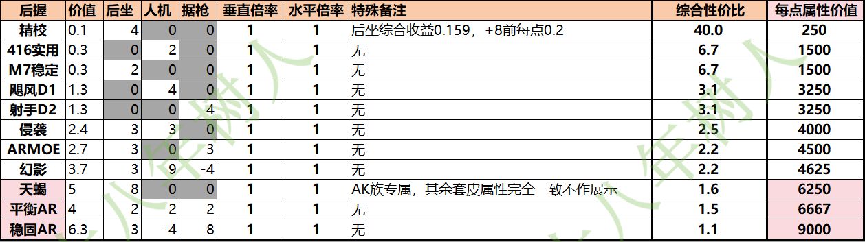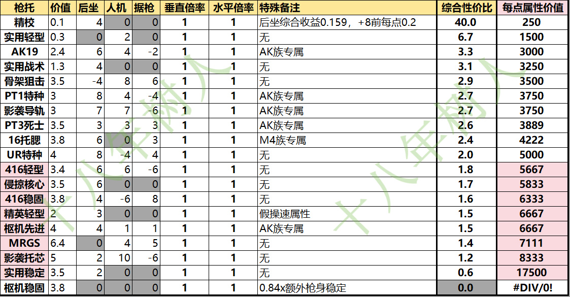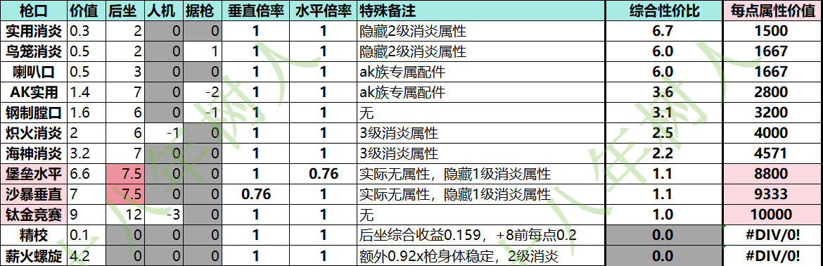这一点在中低配改枪尤为重要,因为后坐前8点属性收益偏高为0.02x,要是被假属性骗了就吃不到了。