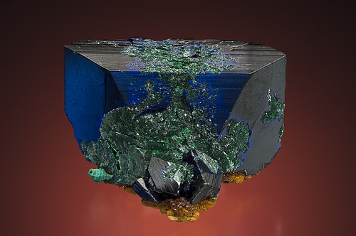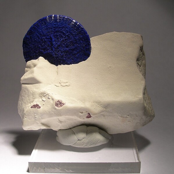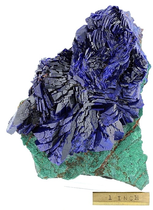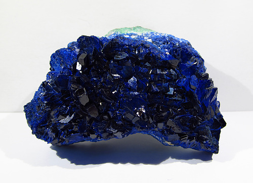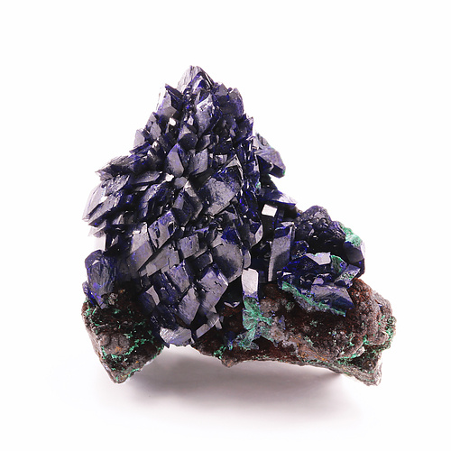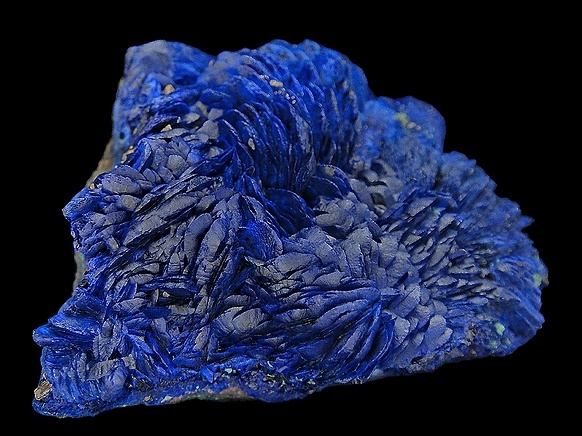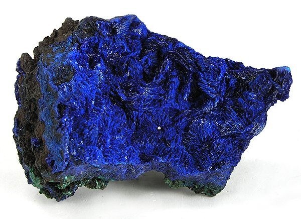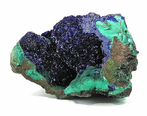 藍銅礦是一種含銅的碳酸鹽礦物,化學成分爲Cu₃[CO₃]₂(OH)₂,屬於單斜晶系,莫氏硬度3.5-4之間。其英文名稱爲 Azurite,這一名稱來源於波斯語 Lazhward,意爲“藍色”,暗指它鮮明的深藍色。除了作爲標本以外,它們同樣也是中國古代常見的礦物顏料之一。