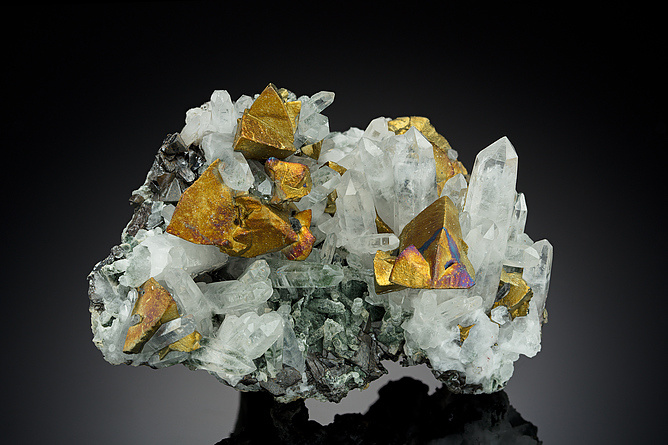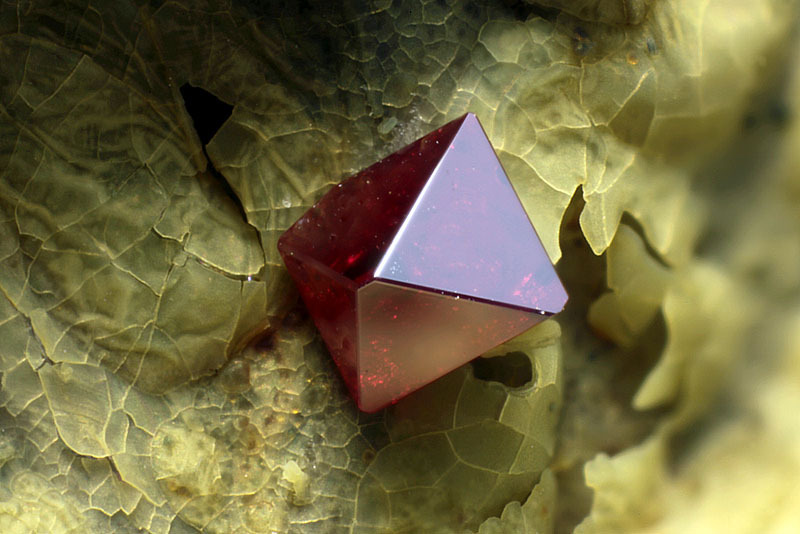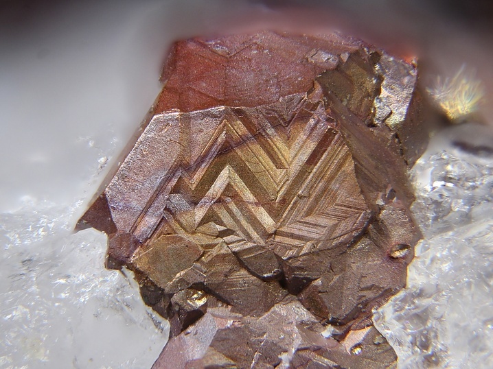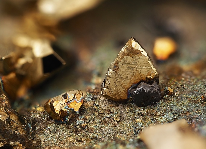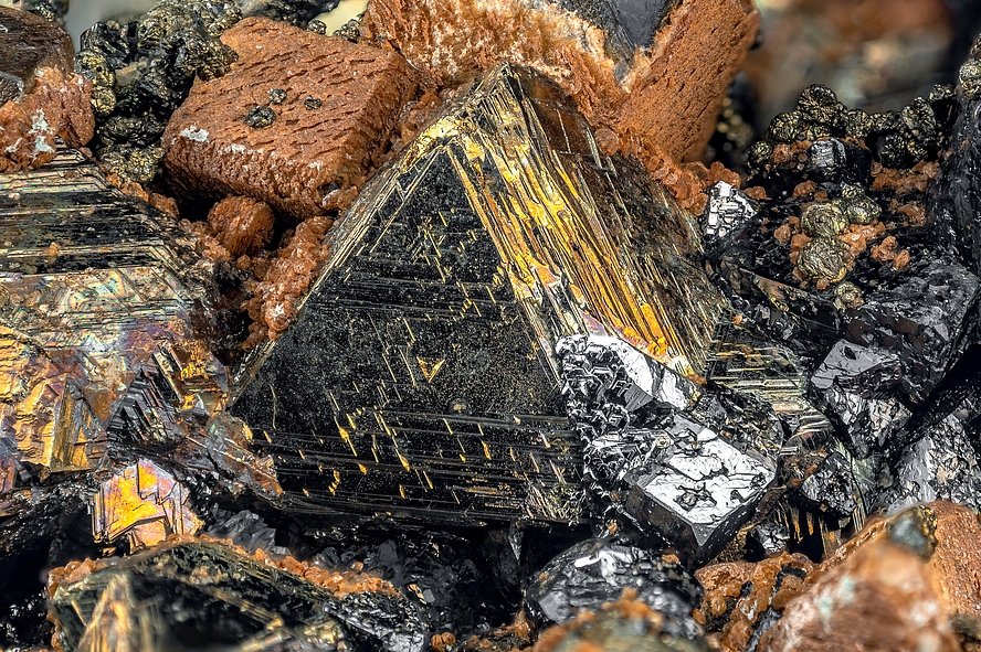 黃銅礦經典的四方晶系在這顯露無疑。楓葉之國的地下,一定也埋藏着楓葉色調的礦物吧。