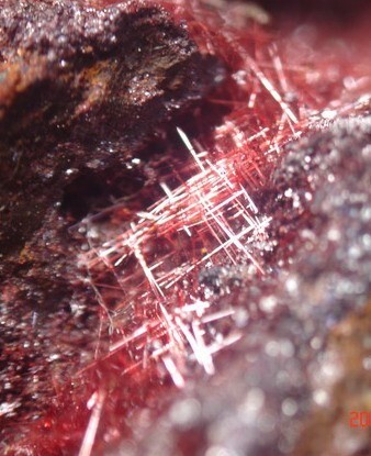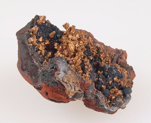 自然銅被赤銅礦交代,兩種銅礦的奇妙交織。