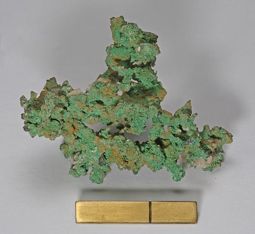 比起黃鐵礦的二硫化亞鐵FeS2,自然銅的化學式僅僅只有Cu兩個字母,是最純粹的礦物之一。