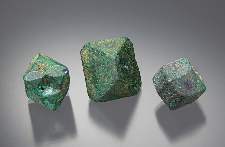 有名的交代礦物,孔雀石鳩佔鵲巢,取代了赤銅礦的晶體形狀,造就了這種特殊的孔雀石標本。